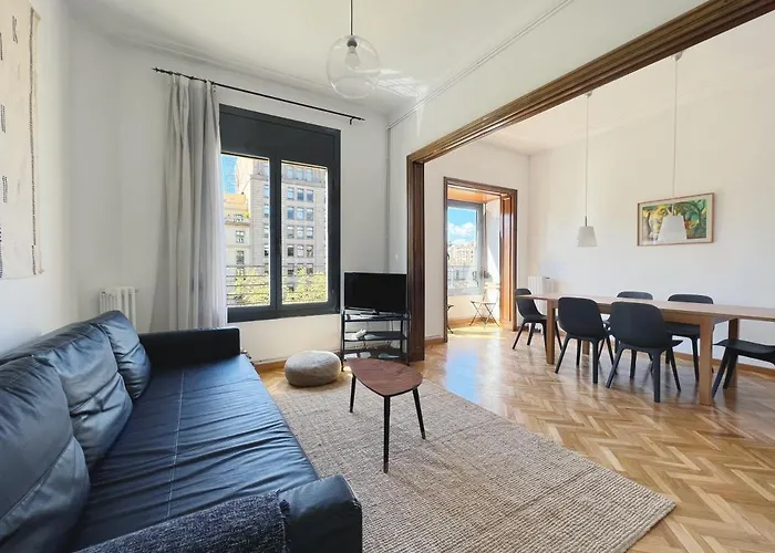Este apartamento de 103 m² se encuentra en el barrio Eixample, a 700 m de La Pedrera y a unos cuantos pasos de Gracia Teatre Lliure Theatre. Este apartamento se sitúa a unos 30 minutos a pie del Parque Güell. Está a 2 km del Parque de la Ciudadela.